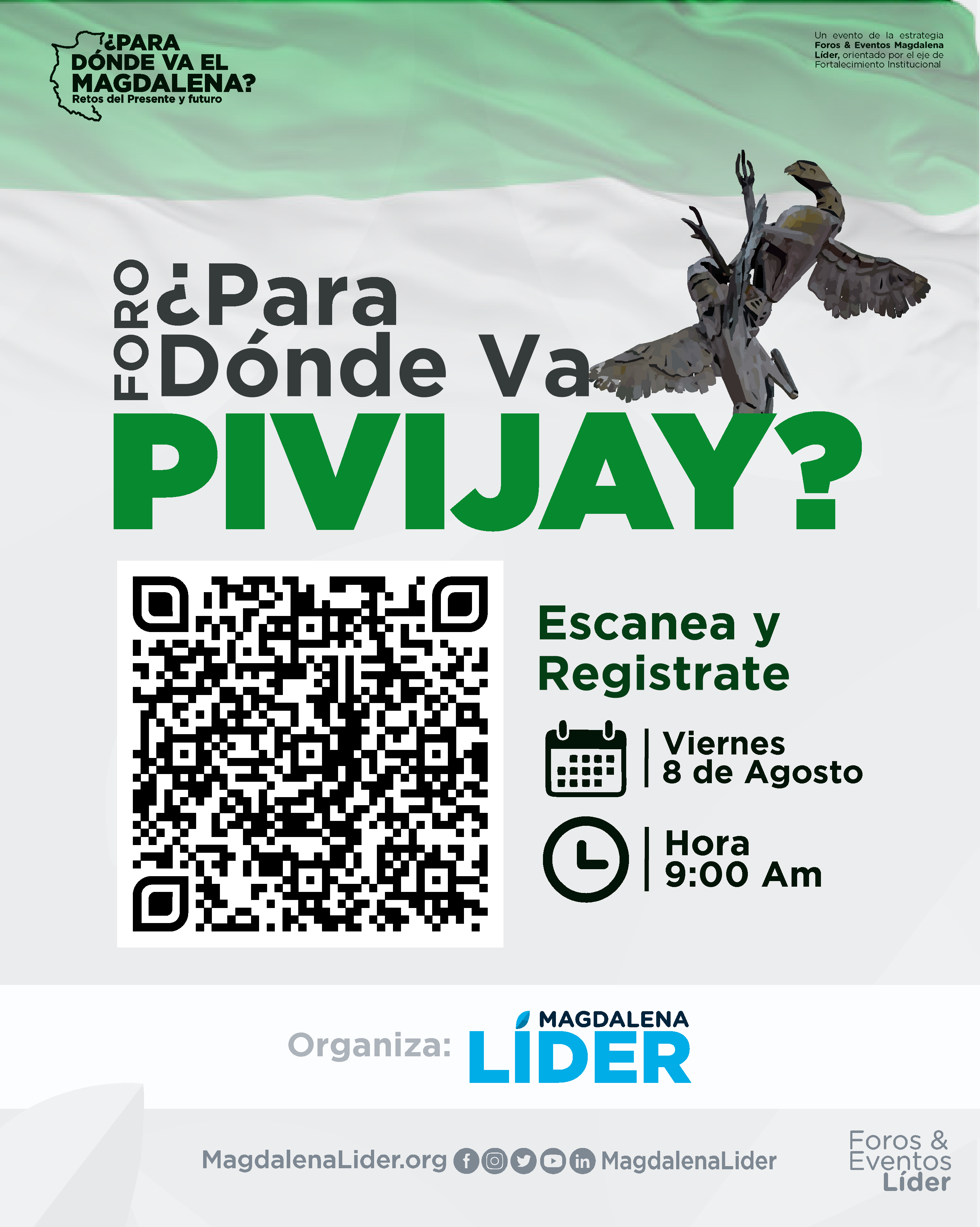 El foro “¿Para Dónde Vamos Pivijay?” es un espacio abierto de análisis, diálogo y participación ciudadana que reunirá a instituciones, líderes comunitarios, organizaciones sociales, académicos y actores políticos para reflexionar colectivamente sobre los retos y oportunidades del municipio en el contexto actual.
