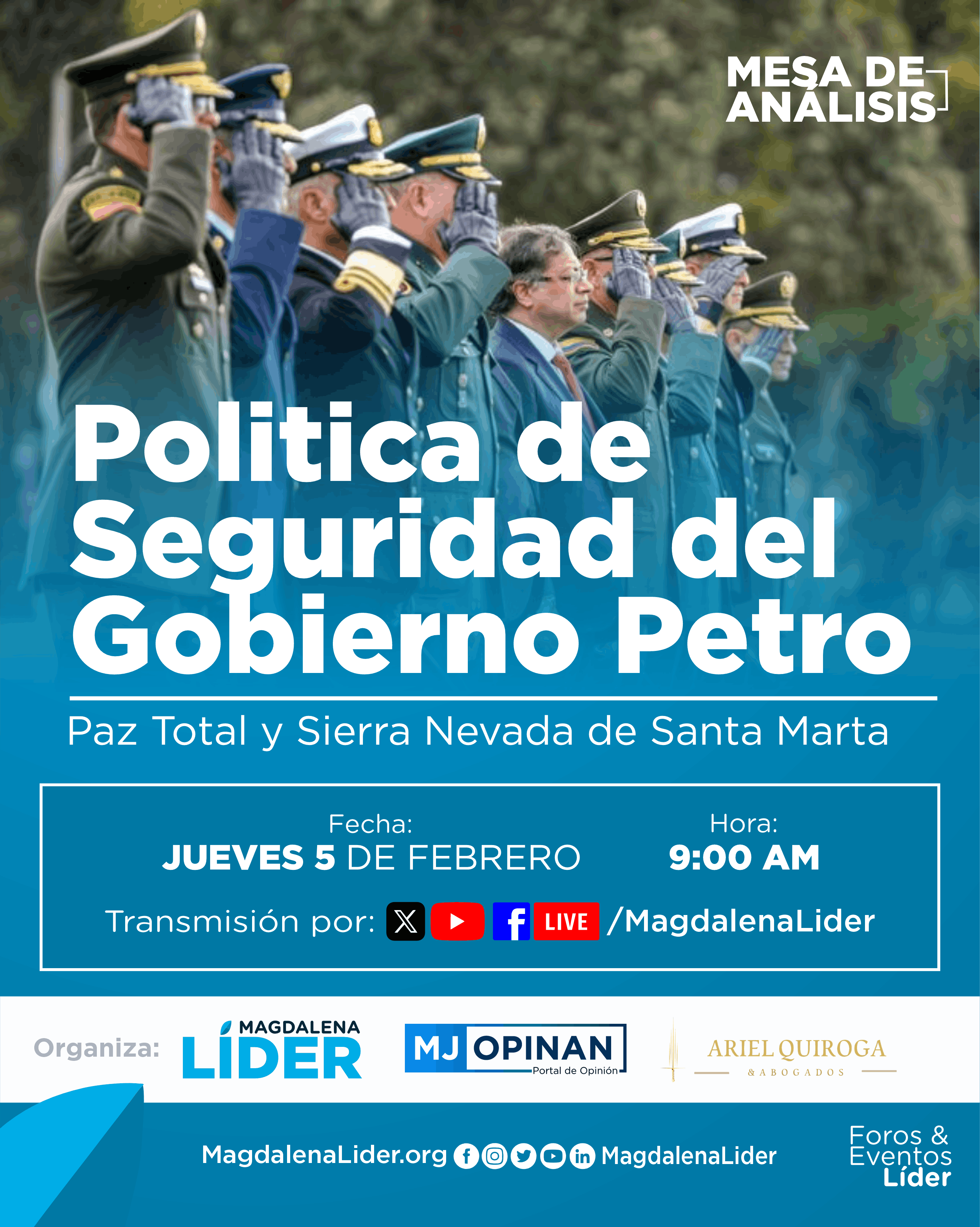 Mesa de análisis sobre la política de seguridad en Colombia: balance, retos y escenarios del gobierno Petro, con enfoque territorial en la Sierra Nevada y los desafíos de la estrategia de Paz Total para el país.