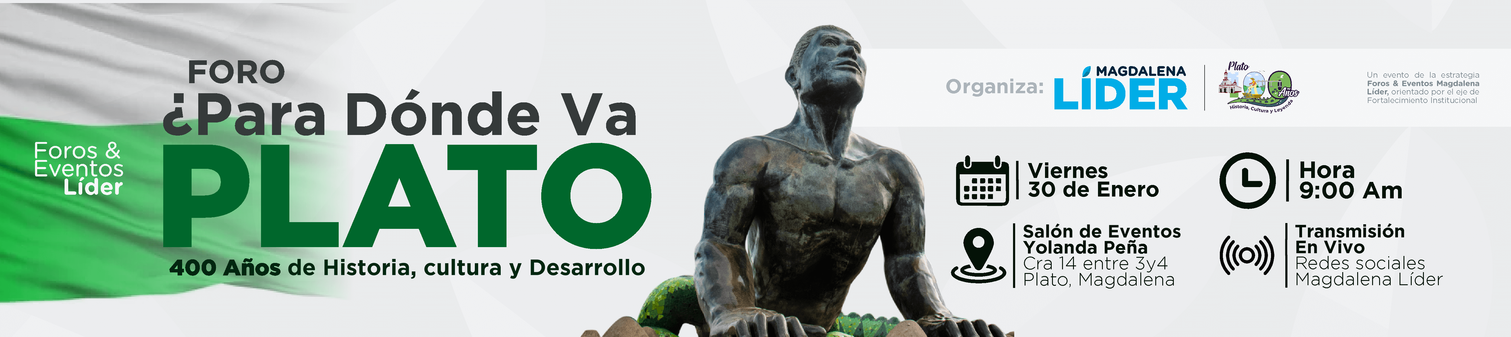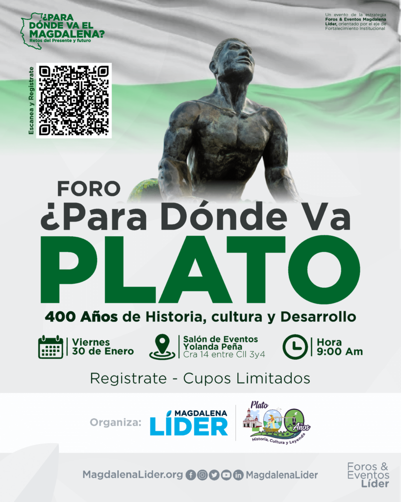En el marco de la conmemoración de los 400 años del municipio de Plato, Magdalena Líder realizará el foro ¿Para dónde va Plato?, un espacio de análisis, diálogo y construcción colectiva orientado a reflexionar sobre el recorrido histórico del territorio, los desafíos del presente y las oportunidades de desarrollo a futuro.